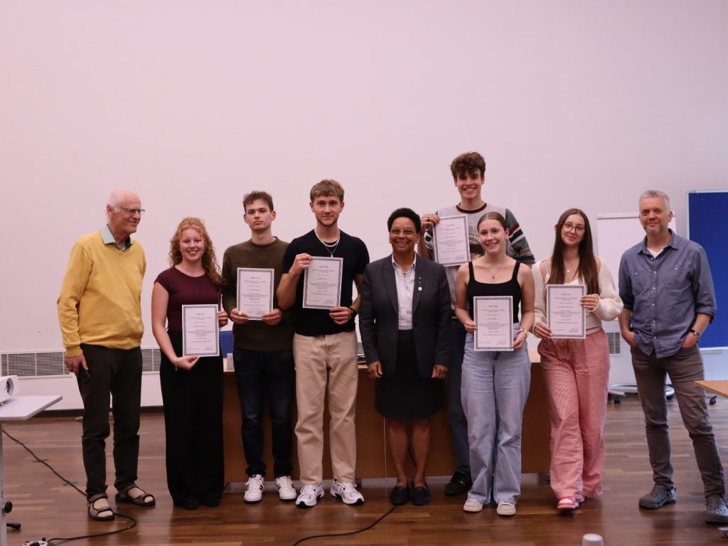 Der zweite Tag der Campus Akademie startete mit der Potentialanalyse bei Frau Böhm. Diese fand in den vorherigen Jahren immer währen der Veranstaltung „Zwischen den Jahren“ statt, wurde jedoch dieses Jahr in den Sommer vorverlegt. Nachdem die Teilnehmenden am Morgen ihr Bestes in den verschiedenen Kategorien des Tests geben mussten, fanden am Nachmittag die Einzelgespräche statt. Dabei wurden mit Frau Böhm die eigenen Stärken und Schwächen, besonders in Bezug auf die zukünftige Karrierewahl, besprochen. Außerdem gab sie ein paar Hilfestellungen und Tipps zur Studienwahl. Im Anschluss an die Gespräche erhielten die Teilnehmer:innen der diesjährigen Campus-Akademie dann feierlich das Zertifikat für ihre Teilnahme an der Potentialanalyse.