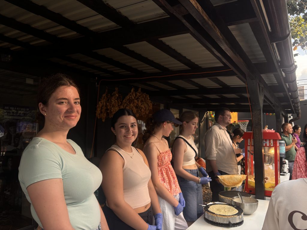 Mit großen Erwartungen erreichte die deutsche Reisegruppe am Montag den Bahnhof in Timișoara – mit nur einer Stunde Verspätung. So musste sich noch niemand an neue Maßstäbe von Pünktlichkeit gewöhnen, und auch der Kulturschock blieb zunächst aus. Am Bahnhof wurden wir von zwei der rumänischen Organisatorinnen und Organisatoren empfangen, die uns den Weg ins Kolping-Haus zeigten. Bereits von der Straßenbahn aus bekamen wir einen ersten Eindruck von der wunderschönen Altstadt. Nach dem Mittagessen begannen wir im Kolping-Haus mit Kennenlernspielen, ganz im Sinne der socioMovens-Tradition. Anschließend stellten sich die Kolping-Organisation sowie die Gruppen Step-in und Campus Weggemeinschaft vor. Am Abend besuchten wir in der Nähe eine „Ruga“, ein traditionelles Fest zu Ehren des Namenspatrons der Stadt. Dort erwarteten uns laute Musik, viel Tanz und gutes Essen. Nach diesem offenen und herzlichen Empfang kehrten wir voller Eindrücke zurück und fielen müde, aber gespannt auf das kommende Programm, ins Bett.