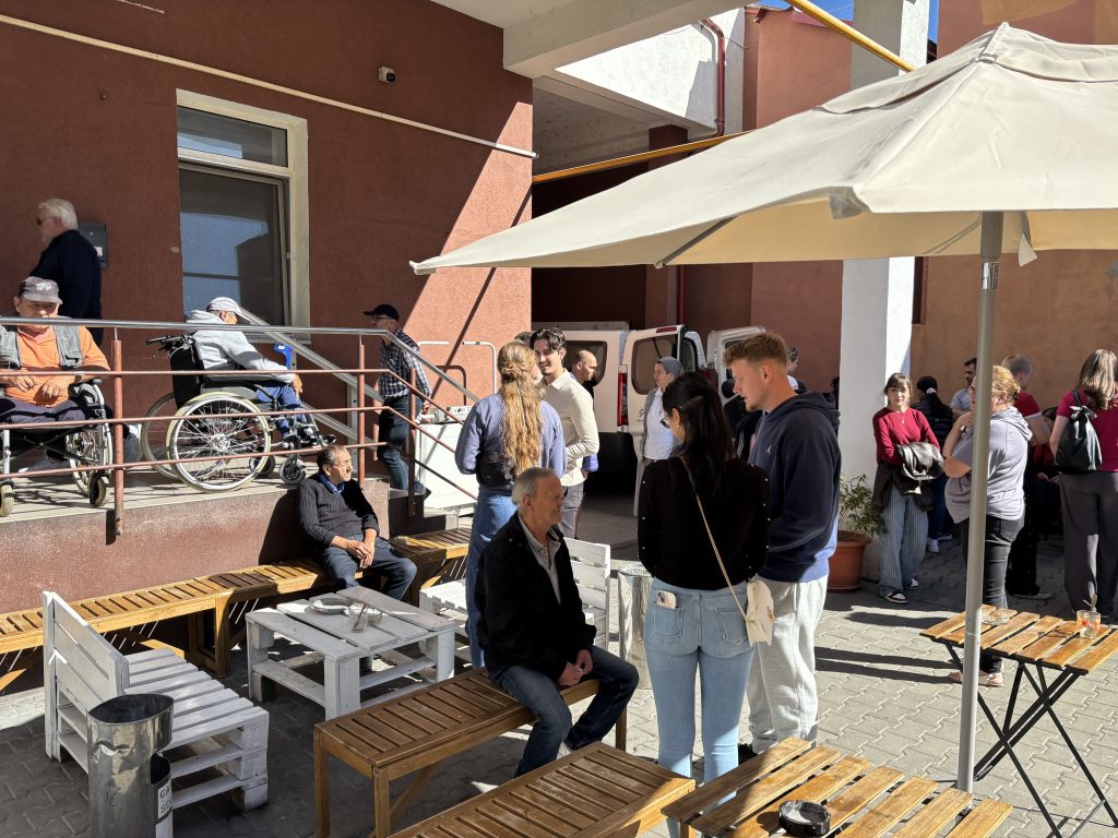 Heute standen zwei große Programmpunkte an: der Besuch einer Wohnungslosenunterkunft und das Museum der Revolution von 1989. Am Vormittag besuchten wir ein „Homeless Shelter“ in Timisoara. Dort können Bewohner bis zu zwei Jahre leben, erhalten Unterstützung beim Umgang mit Geld, juristische Beratung und Hilfe bei der Rückkehr in ein eigenständiges Leben. Die Leiterin beeindruckte uns mit ihrem Engagement und verkörperte das Tagesmotto „Do your best“. Sie schilderte uns den Alltag der Einrichtung und erzählte von Erfolgen wie auch Rückschlägen. Besonders bewegte uns die Geschichte eines Mannes, der nach seiner Zeit im Shelter Arbeit fand, ein eigenes Haus kaufen konnte und so zu einem selbstbestimmten Leben zurückkehrte. Beim Gespräch mit den Bewohnern fiel uns auf, wie sehr sie sich über unseren Besuch freuten. Einer sagte sogar, er fühle sich „wie ein Star“. Gleichzeitig machten uns manche Schicksale, wie das eines ehemaligen Pflegemitarbeiters aus Deutschland, der nach einer schweren Erkrankung in Rumänien obdachlos wurde, sehr betroffen. Am Nachmittag besuchten wir das Museum der Revolution von 1989. Viele von uns hatten zuvor kaum Wissen über das Ceaușescu-Regime. Umso eindrücklicher war es, über die Geschehnissen in Timișoara zu erfahren, die zum Sturz des Regimes führten. Wir lasen die Namen der willkürlich erschossenen Menschen, darunter Jugendliche in unserem Alter und sogar ein zweijähriges Kind. Besonders berührend waren die Briefe von Eltern an ihre ermordeten Kinder. Später entdeckten wir noch Einschusslöcher an Häusern und Denkmälern in der Stadt – eine eindringliche Erinnerung daran, dass diese Ereignisse erst 36 Jahre zurückliegen und noch sehr präsent sind. Am Abend teilten wir unsere Erfahrungen im Lichte des Mottos „Do your best“ und ließen den Tag bei Kartenspielen ausklingen.